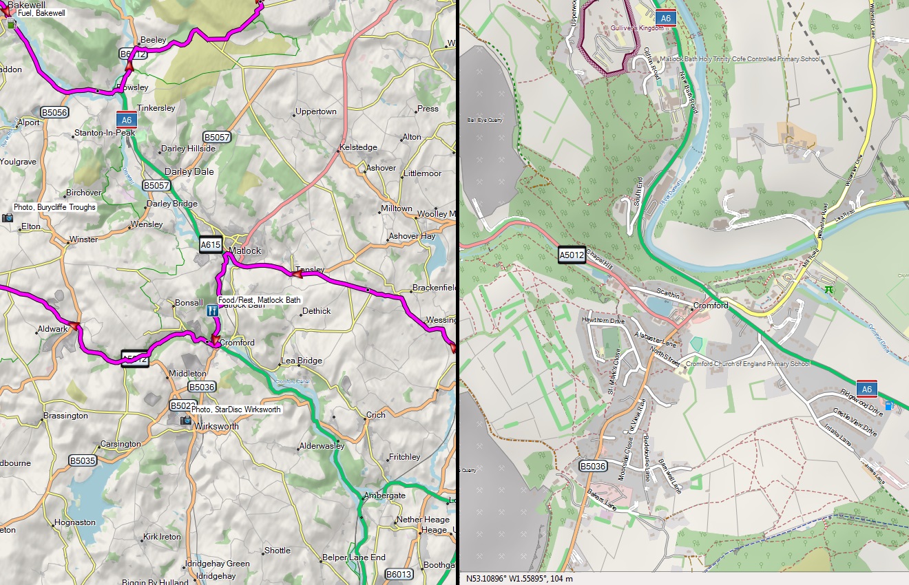These can co-exist with other OSM/Freizeitkarte maps and make for interesting comparisons when switching between different "themes".
