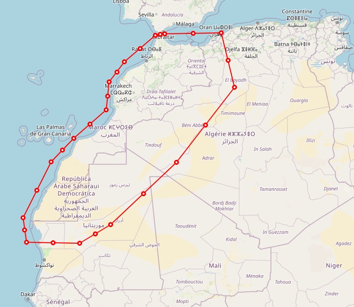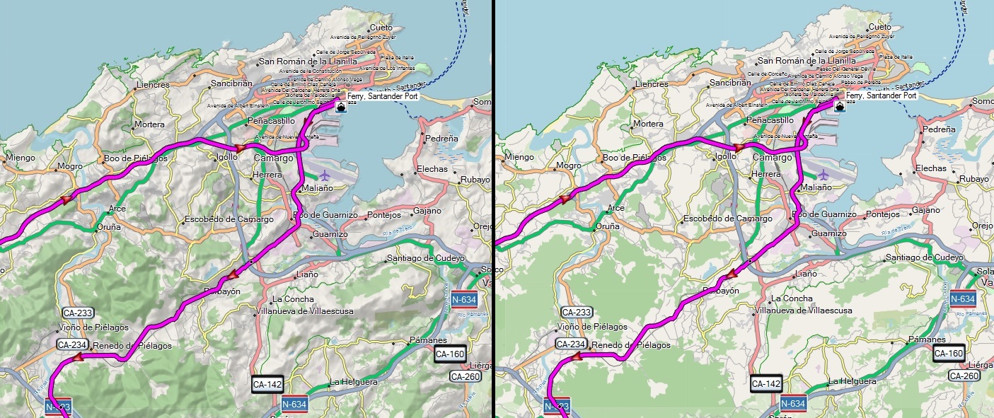 On the right, click the image to see a comparison of the Canary Islands, or here's a view of the area near Santander, part of the "Picos" tour.