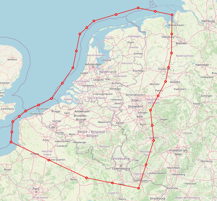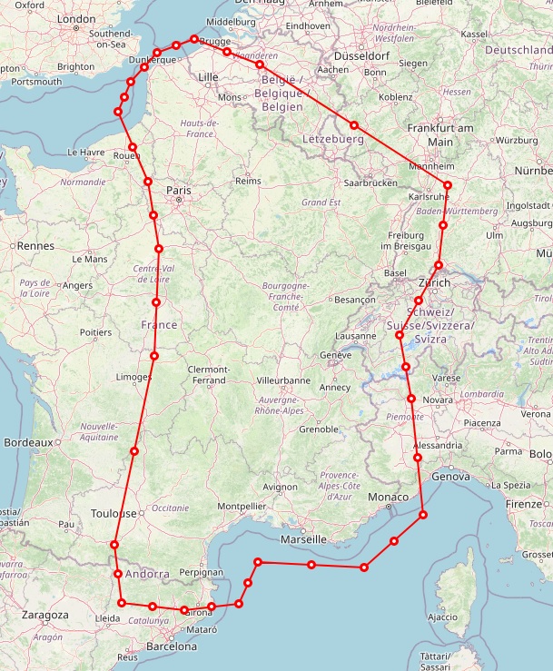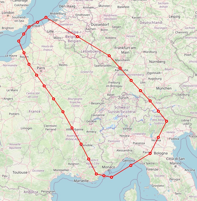 These are available to download free and most maps cover additional areas around the main Country to allow for easy planning of trips/tours. For instance, if you're doing a tour around Belgium and Calais is your arrival/departure port - you'll probably want an area like this. This gives you a good amount of surrounding area without having to use individual Country maps. |
